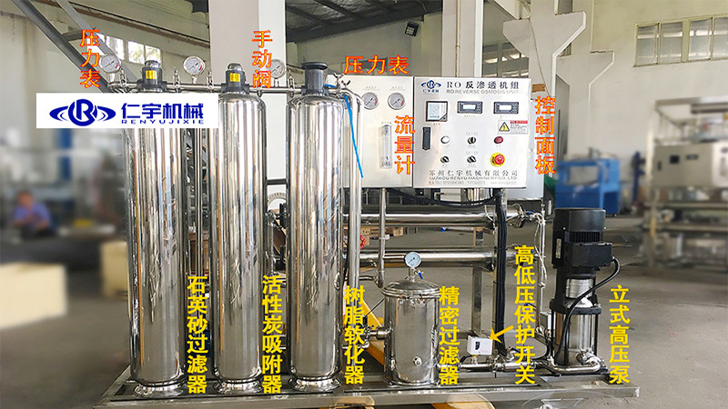 RO(0.25T/H型、0.5T/H型、0.75T/H型、1.0T/H)反渗透设备将完善正规的饮用纯净水制作工艺集为一体,流程清晰,易于维护保养。