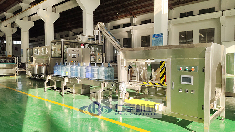 仁宇机械生产的桶装山泉水灌装机5加仑桶装水生产线设备适用于桶装水生产,集冲洗、灌装、封口于一体,是生产饮用矿泉水、纯净水的理想设备,整机采用SUS304不锈钢材料,有耐腐蚀,后端输送配备足够厚的不锈钢链条,不容易断裂,强劲的电机,足够马力带动能稳定带动桶装水的输送,电器元件采用西门子,欧姆龙有等品牌,生产线采用电器程序控制,具有联锁、信号、自测有情安全装置。