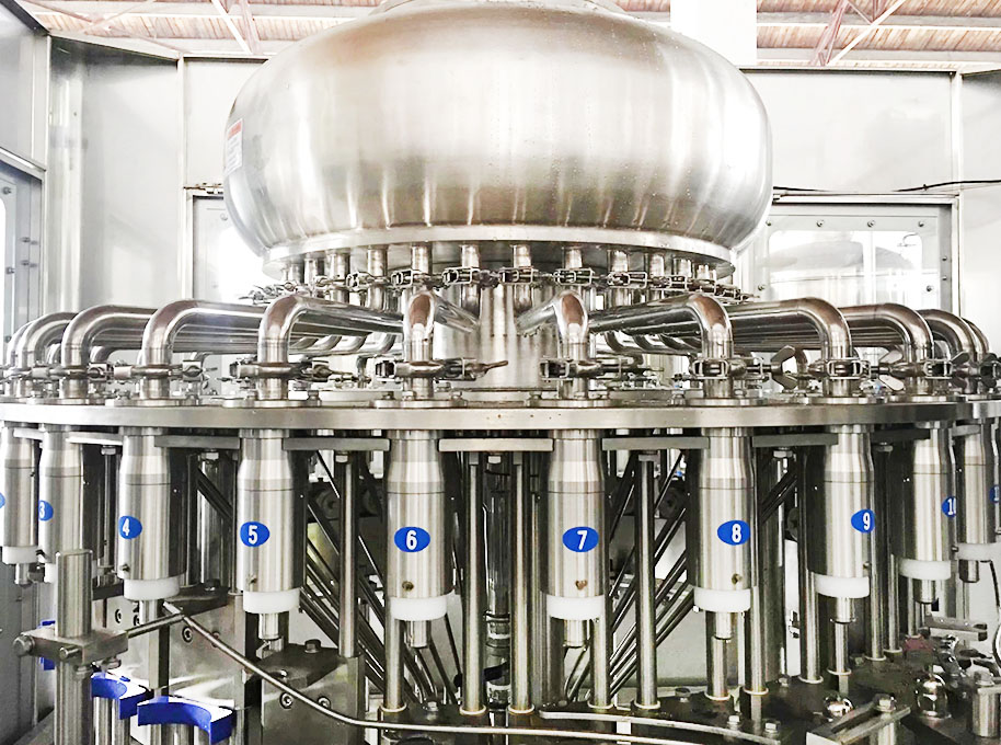 含汽饮料灌装机的产量从3000到18000瓶/小时,可由客户自主选择。同时根据客户的需求,均可以完善支持供盖系统自动控制、灌装温度自动检测、物料高温报警、低温停机并自动回流、无瓶不加盖、缺瓶等待、缺盖停机等功能。